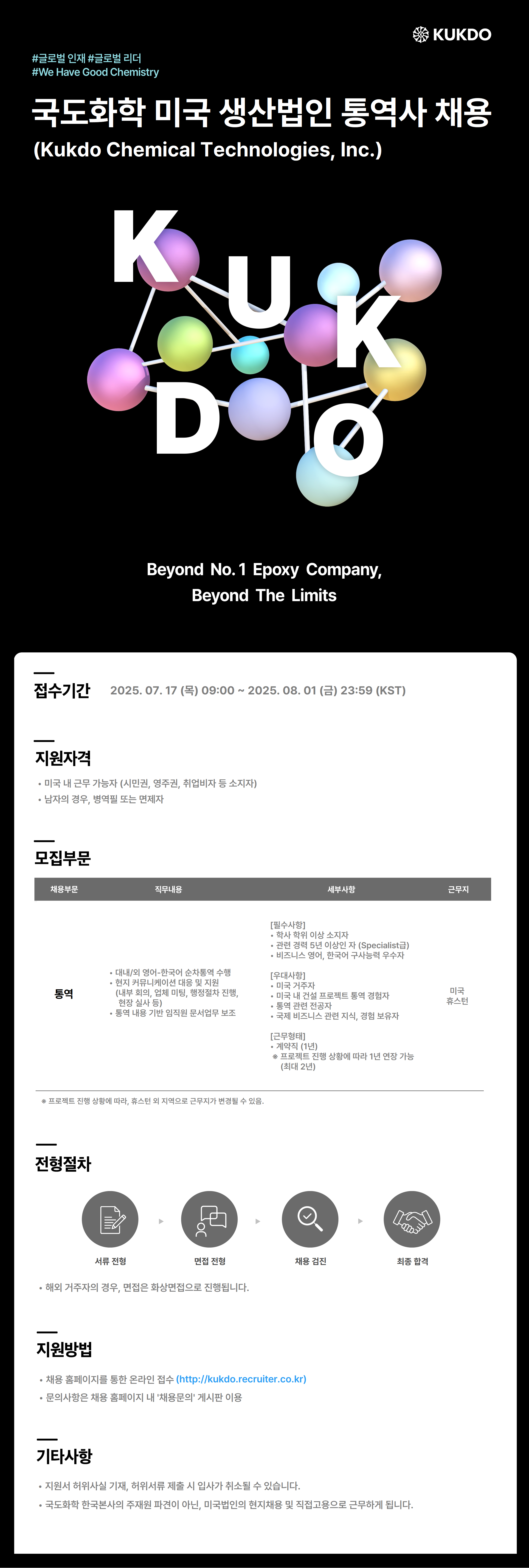 [국도화학] 미국 생산법인 채용 (2025.07.18)